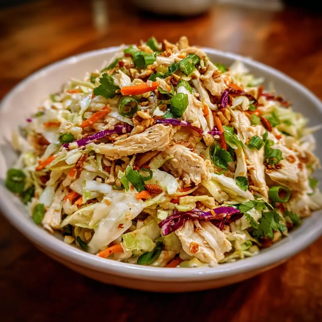Of all the recipes that have become a staple in my kitchen, this Asian Cabbage Slaw with Chicken holds a special place. I first threw it together on a balmy summer evening when I was craving something incredibly fresh and vibrant, yet substantial enough to be a full meal. I wanted crunch, I wanted color, and I wanted a dressing that would dance on my tongue with that perfect balance of tangy, sweet, and savory. The result was nothing short of a revelation. My husband, who usually leans towards heartier, warmer meals, was instantly won over by the explosion of textures and flavors. My kids, notorious for pushing vegetables around their plates, actually asked for seconds, completely mesmerized by the colorful “rainbow salad.” It has since become our go-to for light weeknight dinners, a star player at summer barbecues, and my secret weapon for healthy meal prepping. This isn’t just a salad; it’s a celebration in a bowl. It’s the satisfying crunch of fresh cabbage, the sweetness of carrots and bell peppers, the tender, protein-packed shredded chicken, and the zesty, nutty dressing that brings it all together in perfect harmony. Every bite is a delightful mix of textures and tastes that leaves you feeling energized, satisfied, and genuinely happy. I’m so excited to share this recipe with you, as I’m confident it will become as beloved in your home as it is in mine.