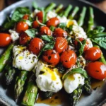 The first time I made this Asparagus and Burrata Salad, it was a spontaneous affair. Spring had just sprung, and the farmer’s market was overflowing with vibrant green asparagus. Burrata, with its creamy heart, had been calling my name from the cheese shop window all week. Combining these two seemed like a match made in culinary heaven, and boy, was I right! The simplicity of the ingredients belies the explosion of flavor and textures in every bite. My family, usually quite critical of anything too “green,” devoured it. Even my youngest, who typically avoids vegetables with the tenacity of a seasoned negotiator, asked for seconds. The fresh, bright flavors, the creamy richness of the burrata against the tender-crisp asparagus, and the zesty lemon dressing – it’s a symphony on a plate. This salad has quickly become a staple in our spring and summer rotation, perfect for a light lunch, a sophisticated appetizer, or even a vibrant side dish at a barbecue. It’s a testament to how simple, high-quality ingredients can come together to create something truly extraordinary. This recipe is more than just a salad; it’s an experience, a celebration of fresh, seasonal produce, and an ode to the joy of simple, delicious food. Get ready to fall in love with your new favorite way to enjoy asparagus and burrata!