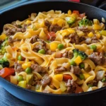 On those chaotic weeknights when time is short and everyone is hungry, the pressure to get a wholesome, satisfying dinner on the table can feel immense. I used to cycle through the same few tired recipes, often met with mixed reviews from my family, especially the kids. Then, one evening, born from a need to use up some ground beef and a crisper drawer full of assorted vegetables, the Beef & Veggie Noodle Skillet was born. It was a revelation. The sizzle of the beef and aromatics, the vibrant colors of the vegetables, and the comforting slurp of noodles all came together in a single pan. From the very first bite, I knew we had a winner. The kids, who normally push broccoli around their plates, were devouring it without a second thought. My partner, a lover of hearty meals, was thrilled with the rich, savory flavor. For me, the best part was the cleanup—or lack thereof. This one-pan wonder has since become a cornerstone of our meal rotation, a go-to recipe that I can whip up in under 30 minutes and know, without a doubt, that it will be met with empty bowls and happy faces. It’s the kind of meal that feels like a warm hug, effortlessly combining convenience with incredible flavor, and it has saved our dinner time more times than I can count.