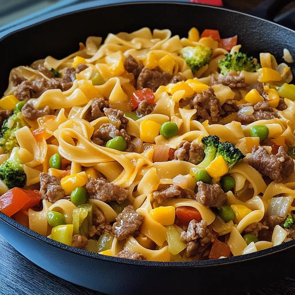 This Beef & Veggie Noodle Skillet is designed for speed and efficiency, making it an ideal weeknight meal.