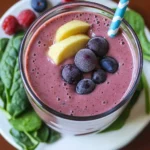 This Berry Spinach Smoothie recipe isn’t just another recipe on the internet; it’s become a genuine lifesaver in our household. Mornings used to be a frantic scramble, often resulting in skipped breakfasts or grabbing something less-than-ideal on the way out the door. I was searching for something quick, healthy, and, crucially, something my picky eaters (yes, husband included!) wouldn’t turn their noses up at. The idea of adding spinach to a smoothie initially met with serious skepticism – visions of grassy, bitter drinks danced in their heads. But I was determined. The first time I blended this vibrant concoction, the color was admittedly very green, which didn’t help my case! However, the magic happened at the first sip. The overwhelming sweetness and tanginess of the mixed berries completely masked any hint of spinach flavor. My kids, initially hesitant, gulped it down and even asked for more, calling it the “purple monster smoothie” (sometimes it leans more purple depending on the berry mix!). My husband, equally surprised, admitted it was delicious and felt surprisingly energizing. Now, it’s our go-to breakfast multiple times a week, a fantastic post-workout refuel, and sometimes even a healthy afternoon snack. It’s incredibly forgiving, easy to customize, and packs a serious nutritional punch without tasting like “health food.” It’s proof that getting your greens in can be utterly delicious and ridiculously easy, transforming chaotic mornings into moments of nourishing calm. Knowing we’re starting the day fueled with vitamins, fiber, and antioxidants makes me feel like I’ve already accomplished something significant before 8 AM! This smoothie isn’t just food; it’s energy, convenience, and peace of mind blended into one delightful glass.