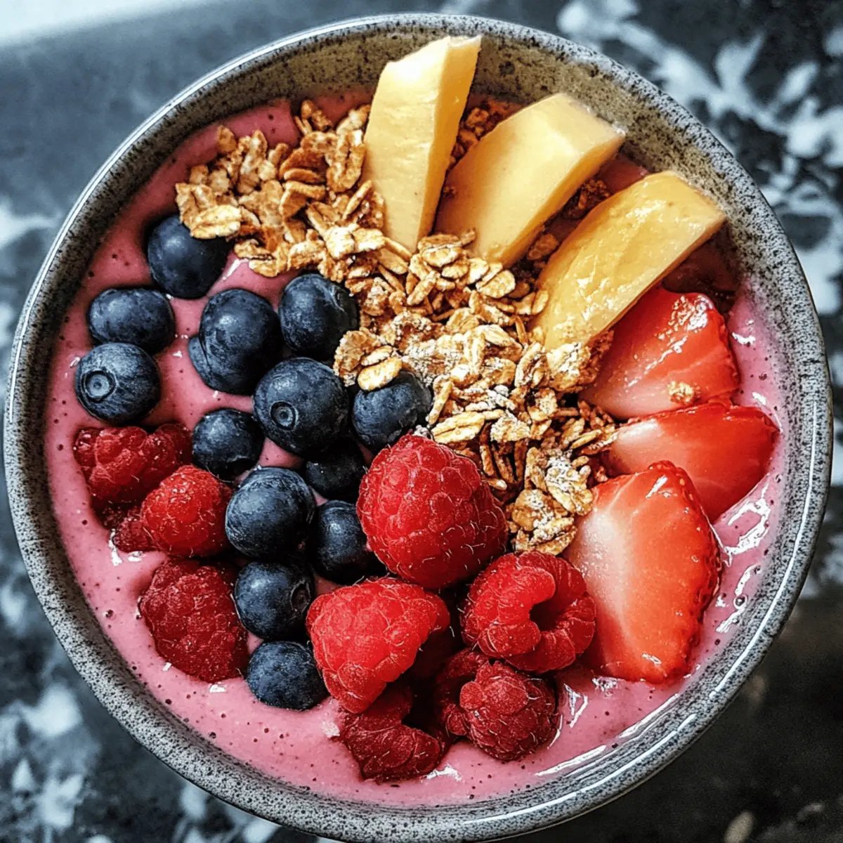 - Use frozen fruit: Frozen berries and banana create a thick, creamy base without needing ice, which can water down your smoothie bowl.