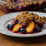 Blueberry Peach Crisp is a delightful dessert that captures the essence of summer’s bounty. With its juicy fruit filling and buttery, crunchy topping, it’s a treat that satisfies both the sweet tooth and the soul. Whether you’re serving it at a family gathering, a potluck, or simply as a cozy weeknight dessert, this crisp is sure to impress. Follow the simple steps outlined in this guide, and you’ll have a delicious, homemade dessert ready to enjoy in no time. So gather your ingredients, preheat your oven, and treat yourself to the sweet, comforting flavors of Blueberry Peach Crisp today!