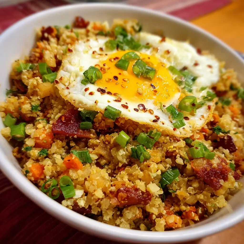 Yes, it is an exceptionally healthy dish. It is packed with micronutrients from the diverse vegetables. By using cauliflower instead of white rice, you drastically cut down on calories and carbohydrates while significantly increasing your intake of fiber, Vitamin C, and Vitamin K. The protein from the eggs and meat promotes satiety, helping to prevent overeating later in the day. It’s a well-rounded meal that provides sustained energy without the blood sugar spike associated with traditional grain-based breakfasts.