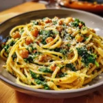 Of all the recipes that have graced my family’s dinner table, few have achieved the legendary status of this Chickpea and Spinach Pasta. It started as an experiment on a frantic Tuesday night, a “what’s-in-the-pantry” kind of meal. I was staring at a can of chickpeas, a bag of spinach on its last legs, and a box of pasta, wondering if I could create something that wasn’t just edible, but genuinely enjoyable. My expectations were modest. Yet, what emerged from the pot that evening was nothing short of a culinary revelation. The sauce was impossibly creamy without a drop of heavy cream, the chickpeas provided a satisfying, hearty bite, and the spinach wilted into silky green ribbons, adding a touch of freshness and virtue. The kids, who usually approach anything green with suspicion, devoured their bowls without a single complaint. My partner, a tough critic, looked up from his plate and declared, “You can make this again. Anytime.” Since that night, this dish has become our go-to comfort meal, our reliable weeknight wonder, and the recipe I share most often with friends. It’s a testament to the magic of simple, wholesome ingredients coming together to create something truly special, proving that you don’t need a complicated process or a long list of fancy items to put a spectacular, nourishing dinner on the table.