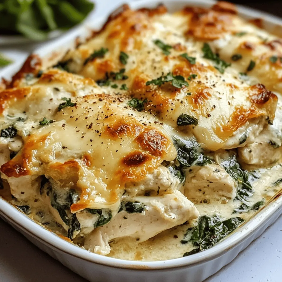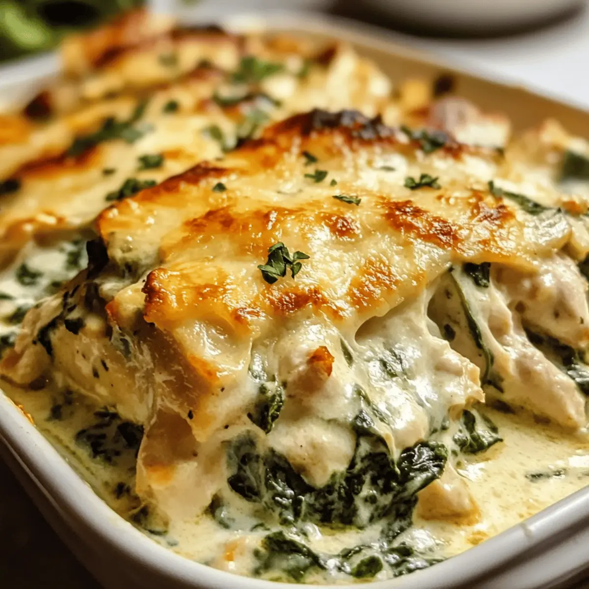 Effortless Comfort: This recipe transforms simple ingredients into a rich, velvety dish that’s both hearty and soothing. Time-Saving: Ready in under an hour, it’s perfect for busy nights without sacrificing flavor. Wholesome Goodness: Packed with tender chicken and fresh spinach, it’s a nutritious crowd-pleaser. Versatility: Easily customized with your favorite cheeses or spices to suit any palate. Homemade Feel: Say goodbye to fast food boredom—this bake brings the warmth of home cooking to your table every time.