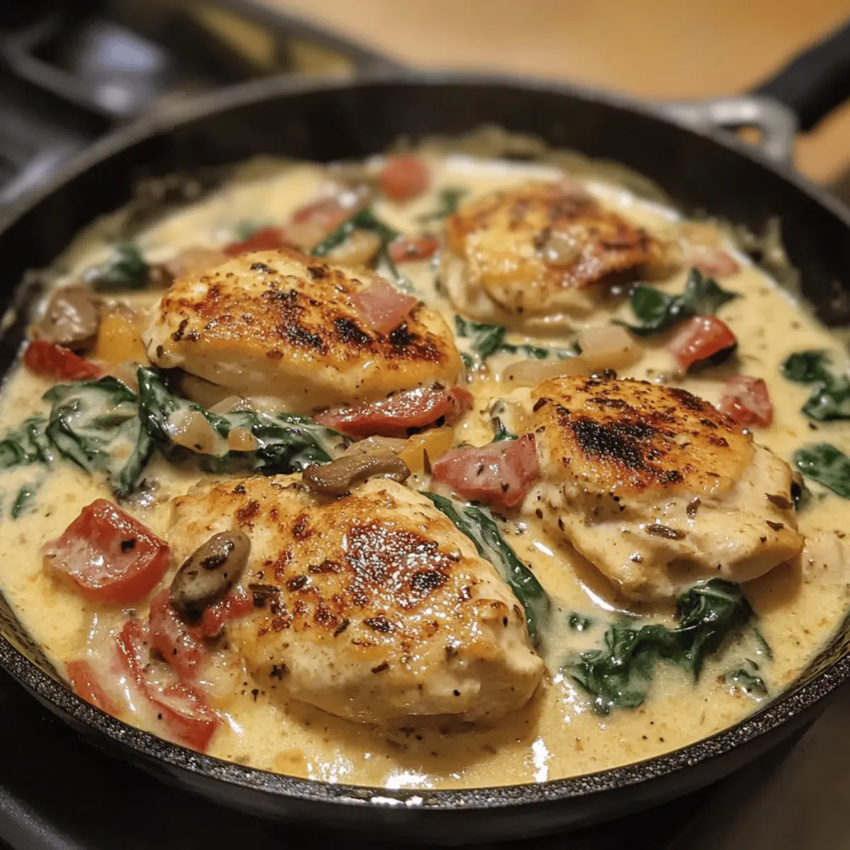 - Even Chicken Thickness: Pound chicken breasts to an even thickness for uniform cooking and to avoid dry edges or undercooked centers in your Creamy Tuscan Chicken Skillet.