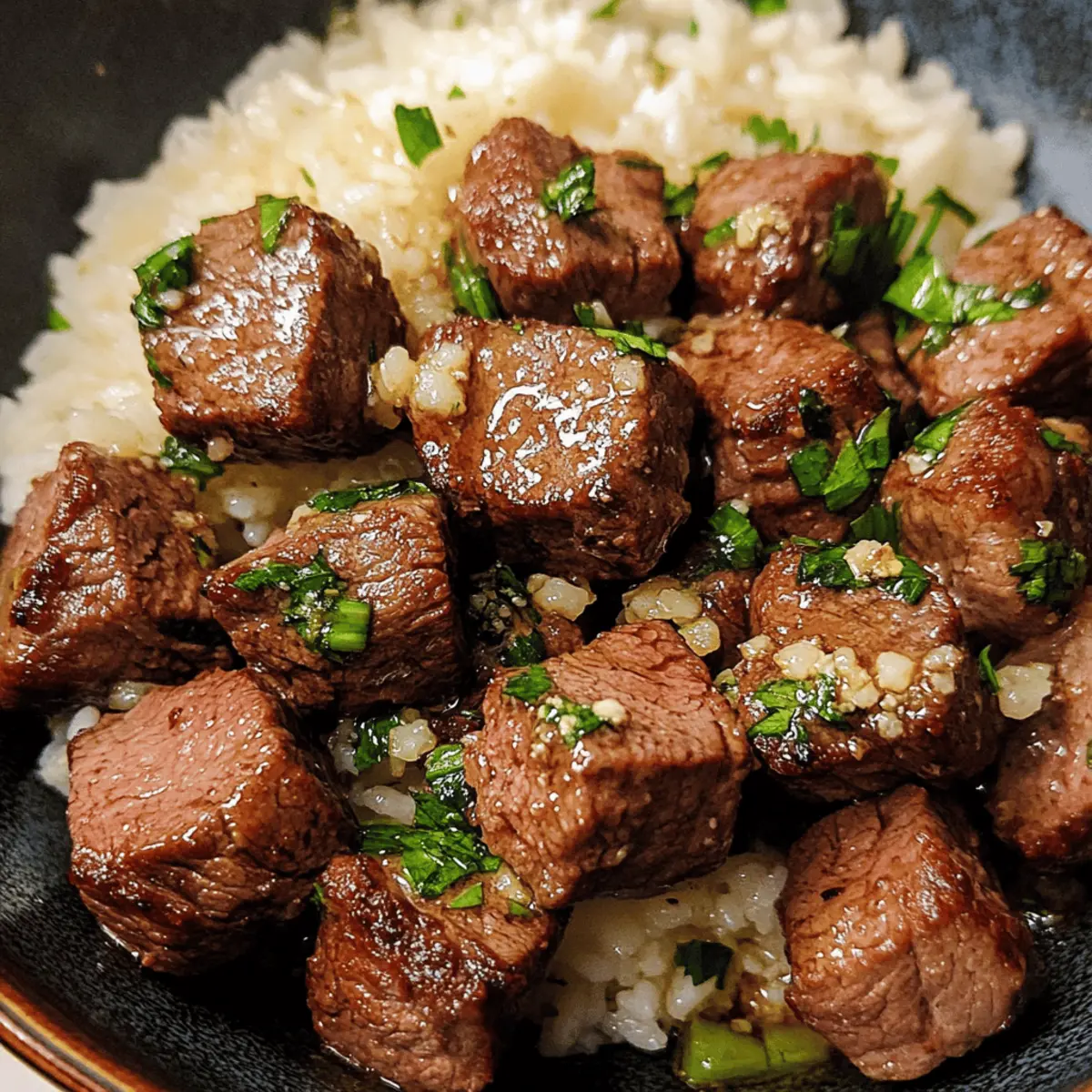 Easy Garlic Butter Steak Bites with Rice That Melt in Your Mouth