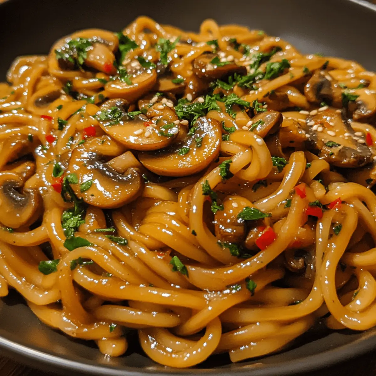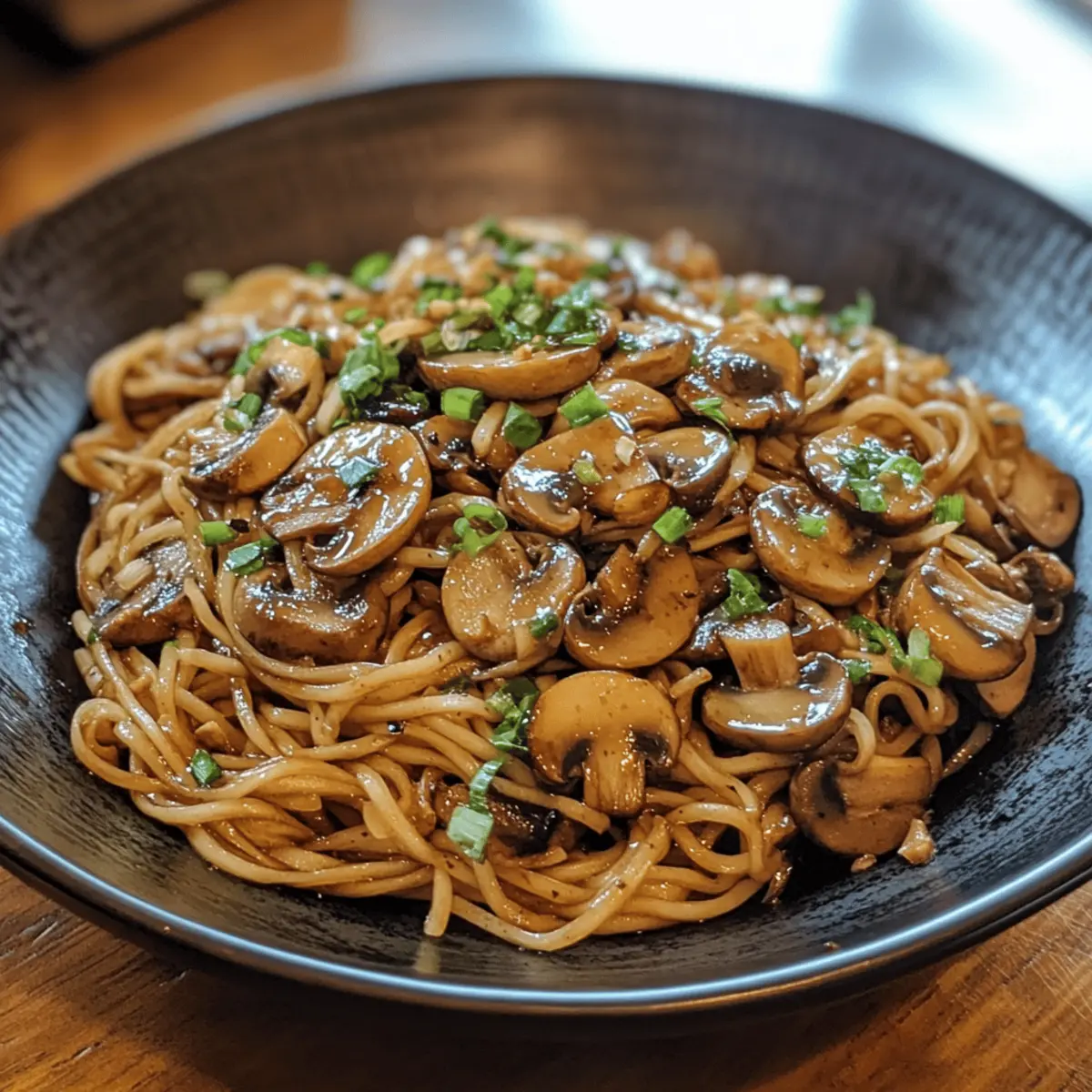 - Egg noodles or rice noodles – cooked al dente to absorb the garlicky mushroom sauce without getting soggy.