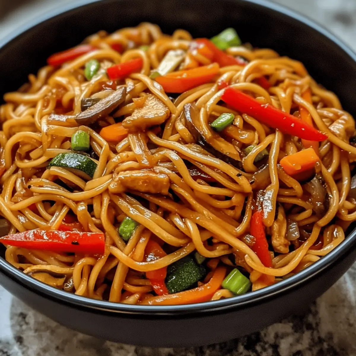 A cozy bowl of veggie lo mein is a culinary hug, perfect to pair with delightful sides or drinks that elevate your meal.