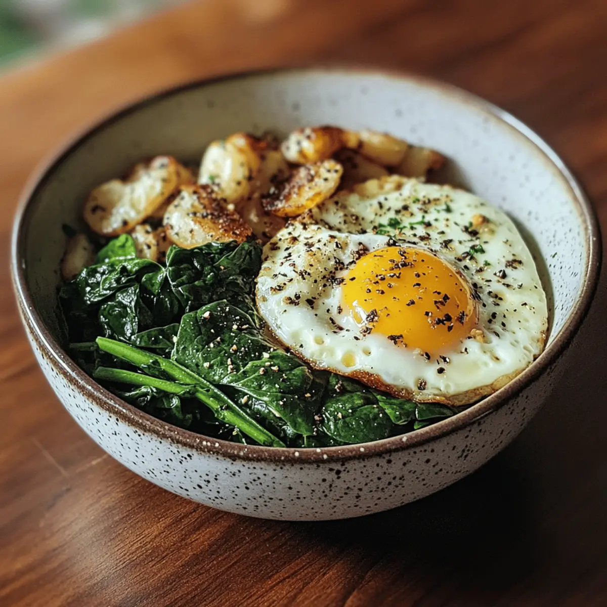 Simplicity at its best: Ready in minutes with minimal prep, perfect for busy mornings. Nutrient-packed: Spinach delivers iron and vitamins, while eggs provide protein for lasting energy. Flavorful and fresh: The combination of sautéed greens and creamy eggs creates a delightful taste. Versatile: Easily customize with your favorite herbs, spices, or veggies. Comforting yet bold: A hearty breakfast bowl that feels like a warm, homemade hug—far from boring fast food.