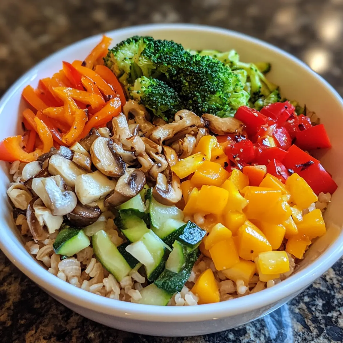 - Rinse Rice Thoroughly: Rinsing brown rice removes excess starch, preventing clumping and ensuring a fluffy, separate grain texture in your Veggie Loaded Brown Rice Bowl.