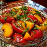Gently wash and thoroughly pat dry the tomatoes and peaches. Moisture is the enemy of a vibrant salad, as it can dilute the flavors and make the dressing watery. Using a sharp serrated knife for the tomatoes and a paring knife for the peaches will prevent squashing the delicate flesh.