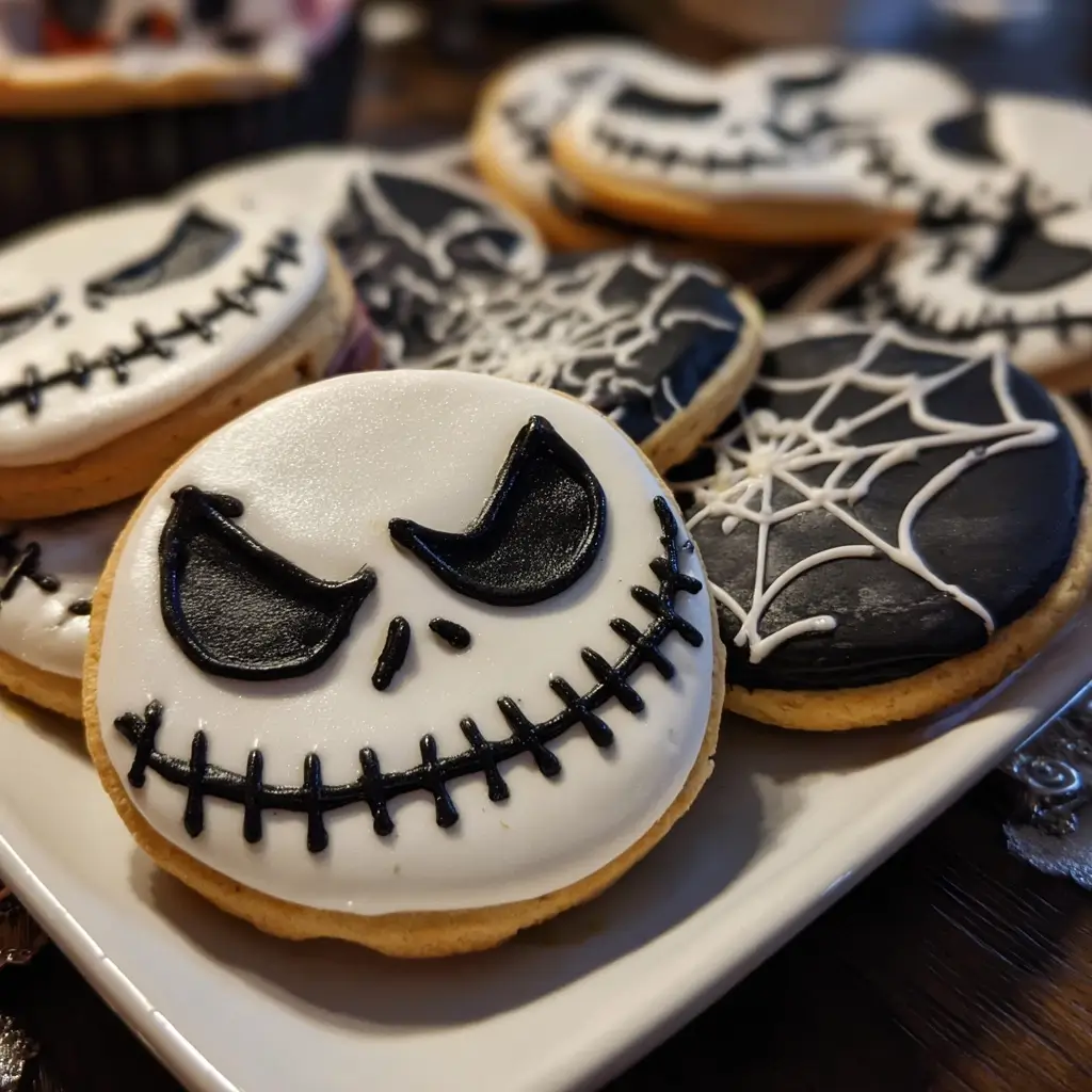 Of all the spooky, delightful traditions our family has embraced for Halloween, our annual The Nightmare Before Christmas movie night is my absolute favorite. The flickering lights, the cozy blankets, and the chorus of voices singing along to “This Is Halloween” create a magic that’s hard to beat. For years, I struggled to find the perfect themed treat to accompany the film. We tried pumpkin-flavored everything and ghost-shaped snacks, but nothing quite captured the unique, gothic charm of Tim Burton’s masterpiece. That is, until I perfected this recipe for Jack Skellington Cookies. The first time I brought out a platter of these, my kids’ eyes went wide. They weren’t just cookies; they were edible art, a direct portal to Halloween Town. The crisp, buttery sugar cookie base provides the perfect, pale canvas, and the sweet, smooth royal icing gives it a professional-looking finish that’s surprisingly easy to achieve. Seeing my family have so much fun, not just eating them, but helping draw on Jack’s iconic, stitched grin was the highlight of our season. These cookies have become more than just a recipe; they are the centerpiece of a cherished memory, a delicious tradition that brings the spirit of the Pumpkin King right into our kitchen.