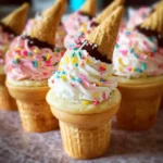 It was my daughter’s 7th birthday, and the pressure was on. She didn’t just want a cake; she wanted something “magical.” My mind raced through a dozen complicated, multi-layered ideas before I remembered a simple truth: for kids, magic is often found in delightful surprises and playful illusions. That’s when the idea for these Mini Ice Cream Cone Cupcakes struck me. I was a little skeptical at first, wondering if they would be more trouble than they were worth. Would the cones get soggy? Would they tip over in the oven? But the thought of a platter of perfect, non-melting “ice cream” cones was too tempting to ignore. The moment of truth came at the party. I brought out the tray, and a wave of silence fell over the backyard, quickly followed by a chorus of “Whoa!” The kids couldn’t believe their eyes. They poked them, sniffed them, and then devoured them with a level of joy I hadn’t seen before. Even the adults were charmed, marveling at the clever concept. It wasn’t just a dessert; it was an experience. They were the undisputed star of the show, and I knew right then that this recipe was a keeper—a surefire way to bring a little bit of that simple, wonderful magic to any celebration.