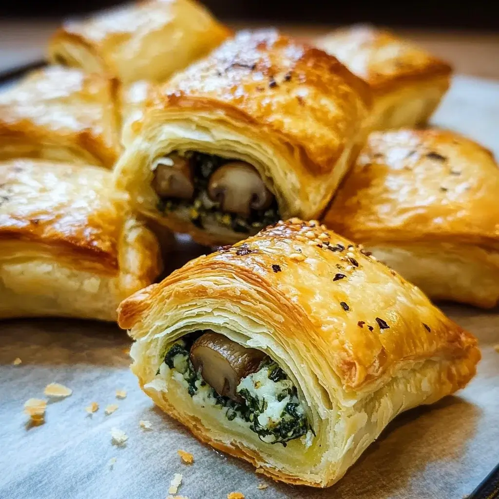 I still remember the first time I made these Mushroom & Spinach Pastry Bites. It was for a casual family get-together, and I wanted something elegant yet easy, something that would disappear off the platter almost as soon as I set it down. To say they were a hit would be an understatement! My usually picky nephew, who eyes anything green with suspicion, was caught sneaking his third one. My sister-in-law, a fantastic cook herself, immediately asked for the recipe. The kitchen was filled with the most incredible aroma as they baked – a rich, earthy scent from the mushrooms mingling with the savory notes of garlic, onion, and melting cheese, all wrapped up in that undeniably comforting smell of buttery, baking puff pastry. What I love most about these bites is the incredible contrast in textures: the shatteringly crisp, golden-brown pastry giving way to a creamy, flavorful, and utterly satisfying mushroom and spinach filling. They look sophisticated, like you’ve slaved away for hours, but honestly, they come together with surprising ease. These Mushroom & Spinach Pastry Bites have since become my go-to appetizer for everything from holiday parties and game day gatherings to a simple, indulgent snack with a glass of wine on a Friday night. They are consistently praised, always devoured, and a testament to how simple ingredients, when combined thoughtfully, can create something truly special and memorable. If you’re looking for a crowd-pleasing, versatile, and delicious appetizer, trust me, this recipe for Mushroom & Spinach Pastry Bites is a keeper you’ll turn to again and again.