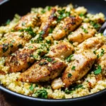 The first time I made this One-Pan Chicken and Cauliflower Rice, it was one of those hectic Tuesday evenings. You know the drill: work ran late, the kids were “starving” (their words, dramatic as ever), and the thought of a complicated meal with a mountain of dishes afterwards was enough to make me want to order takeout. But, I was determined to stick to our healthy eating goals. I’d seen recipes for sheet pan dinners, and the idea of minimal cleanup was incredibly appealing. I decided to adapt a few concepts, focusing on lean protein and a low-carb vegetable base. The aroma that filled the kitchen as the chicken and veggies roasted was the first sign of success – savory, herby, and utterly inviting. My partner, usually a rice aficionado, was skeptical about the cauliflower rice, but by the end of the meal, he was asking for seconds! Even my pickiest eater, my daughter, cleaned her plate, declaring the chicken “super yummy” and the “funny rice” surprisingly good. It wasn’t just a meal; it was a small victory. Since then, this One-Pan Chicken and Cauliflower Rice has become a beloved staple in our weekly rotation. It’s proof that healthy, delicious, and easy can coexist, even on the busiest of nights. It’s my go-to for a reason: it’s incredibly versatile, packed with flavor, and leaves me with more time to spend with my family instead of scrubbing pots and pans.