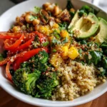 Of all the recipes that have become a permanent fixture in our weekly rotation, this vibrant vegetarian quinoa bowl holds a special place. The first time I made it, I was simply looking for a healthy, quick lunch option to break the monotony of sad desk salads. What I ended up with was a flavor explosion that was so much more than the sum of its parts. I remember my husband, typically skeptical of anything labeled “vegetarian bowl,” walking into the kitchen, drawn by the zesty aroma of fresh lime and cilantro. He took one look at the kaleidoscope of colors in the bowl—the bright red peppers, the sunny yellow corn, the creamy green avocado—and his interest was piqued. His first bite was followed by a moment of silence, then a simple, “Wow, this is actually amazing.” Since then, it’s become our go-to meal for busy weeknights, a reliable meal-prep champion, and even a crowd-pleasing dish to bring to potlucks. It’s the kind of meal that leaves you feeling energized and satisfied, not heavy and lethargic. It’s proof that healthy eating can be incredibly delicious, utterly satisfying, and beautiful to look at. This recipe isn’t just about food; it’s about feeling good, from the inside out.