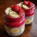 Of all the breakfast battles I’ve faced over the years, finding a meal that is quick, genuinely healthy, and exciting enough to get my family out of bed has been the toughest. Mornings in our house used to be a frantic scramble of toast, cereal, and the occasional half-eaten piece of fruit on the way out the door. I was searching for a game-changer, something I could prepare ahead of time that would feel like a treat but pack a serious nutritional punch. That’s when I discovered the magic of chia pudding, and after much experimentation, this Strawberry Banana Chia Jar recipe was born. The first time I served these, they were met with wide-eyed silence. My kids, usually suspicious of anything overtly “healthy,” were captivated by the colorful layers. It looks like a dessert, like something you’d get at a fancy café. The verdict? An overwhelming success. The combination of the sweet, jam-like strawberry layer, the creamy and luscious banana base, and the satisfyingly textured chia pudding was an instant hit. It has the nostalgic flavor of a classic strawberry-banana smoothie but elevated into a substantial, spoonable meal. Now, these jars are a staple in our weekly meal prep. They’ve single-handedly transformed our morning routine from chaotic to calm, proving that a delicious, energizing, and beautiful breakfast doesn’t have to be complicated.