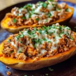 This Stuffed Sweet Potato with Turkey recipe has genuinely become a staple in our household, a true weeknight warrior that never fails to impress. The first time I made it, I was looking for something hearty yet healthy, a dish that wouldn’t leave us feeling heavy but would still be deeply satisfying. My husband, who can be a bit skeptical of “healthy” meals, was instantly won over by the incredible aroma wafting from the oven. The kids, initially drawn in by the vibrant orange of the sweet potatoes, devoured their portions, even the one who usually picks at vegetables! What I love most is the beautiful marriage of flavors and textures: the inherent sweetness of the perfectly baked sweet potato, the savory, well-seasoned ground turkey filling packed with subtle spices and tender vegetables, and the creamy, often cheesy, topping that brings it all together. It’s one of those rare recipes that feels like a comforting hug while still packing a serious nutritional punch. It’s incredibly versatile too; we’ve tweaked the spices, added different veggies, and even experimented with toppings, and it always turns out wonderfully. This isn’t just a recipe; it’s a canvas for delicious, wholesome creativity that consistently brings smiles to our dinner table.