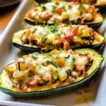 The first time I pulled these vibrant Stuffed Zucchini Boats with Veggies from the oven, I knew I had a winner. The aroma alone – a comforting blend of roasted zucchini, sautéed garlic and onions, sweet peppers, and melting cheese – had my family hovering around the kitchen, plates in hand. Zucchini can sometimes be a hard sell, especially with younger eaters, but transforming them into edible “boats” filled with a colourful medley of vegetables and topped with bubbly cheese? That was the magic trick. They loved scooping out the flavourful filling, the tender zucchini shell yielding easily under their forks. It wasn’t just a meal; it felt like a fun, interactive experience. Since then, this recipe has become a regular feature in our rotation, especially during the summer months when zucchini is abundant and incredibly affordable. It’s wonderfully versatile, easily adaptable to whatever veggies we have lingering in the crisper drawer, and it feels both wholesome and satisfyingly indulgent. It strikes that perfect balance between healthy eating and comfort food, proving that nutritious meals can be absolutely delicious and exciting. Plus, as the primary cook, I appreciate how relatively straightforward it is to prepare, making it achievable even on a busy weeknight. It’s a fantastic way to pack in a variety of vegetables, and the visual appeal is undeniable – those bright green boats overflowing with colourful filling look stunning on a plate. It’s a dish that feels special occasion-worthy but is practical enough for everyday enjoyment.