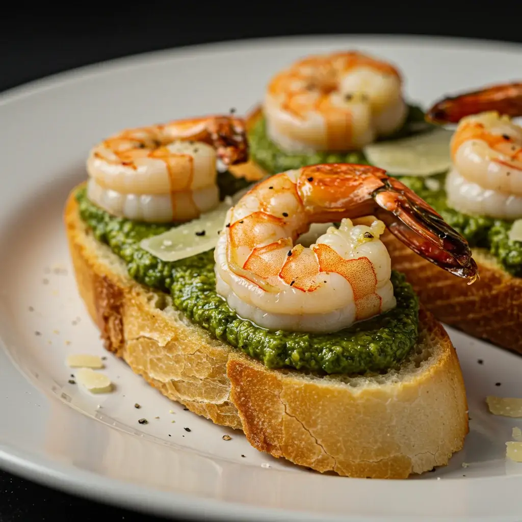 Pesto Shrimp Crostini Crunch