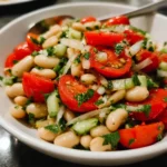 Of all the recipes that have become staples in my kitchen, this Tomato and White Bean Salad holds a special place, particularly during the sun-drenched days of summer. I first threw it together on a sweltering afternoon when the thought of turning on the oven was simply unbearable. I needed something quick, something refreshing, but also something substantial enough to quell the “I’m still hungry!” chorus from my family after a long day at the pool. I raided the pantry and the garden, emerging with a can of cannellini beans, a basket of sun-ripened cherry tomatoes, and a fragrant bunch of basil. The result was nothing short of a revelation. The creamy beans, the burst of sweet tomato, the sharp bite of red onion, and the herby, garlicky dressing created a symphony of flavors and textures. It was an instant hit. Now, it’s our go-to for everything from a quick weekday lunch to a vibrant side dish at weekend barbecues. It’s the dish my friends ask me to bring to potlucks, and the one that proves, time and again, that the most delicious meals are often the simplest. This salad isn’t just food; it’s the taste of a perfect summer day, a healthy and effortless celebration of fresh ingredients.