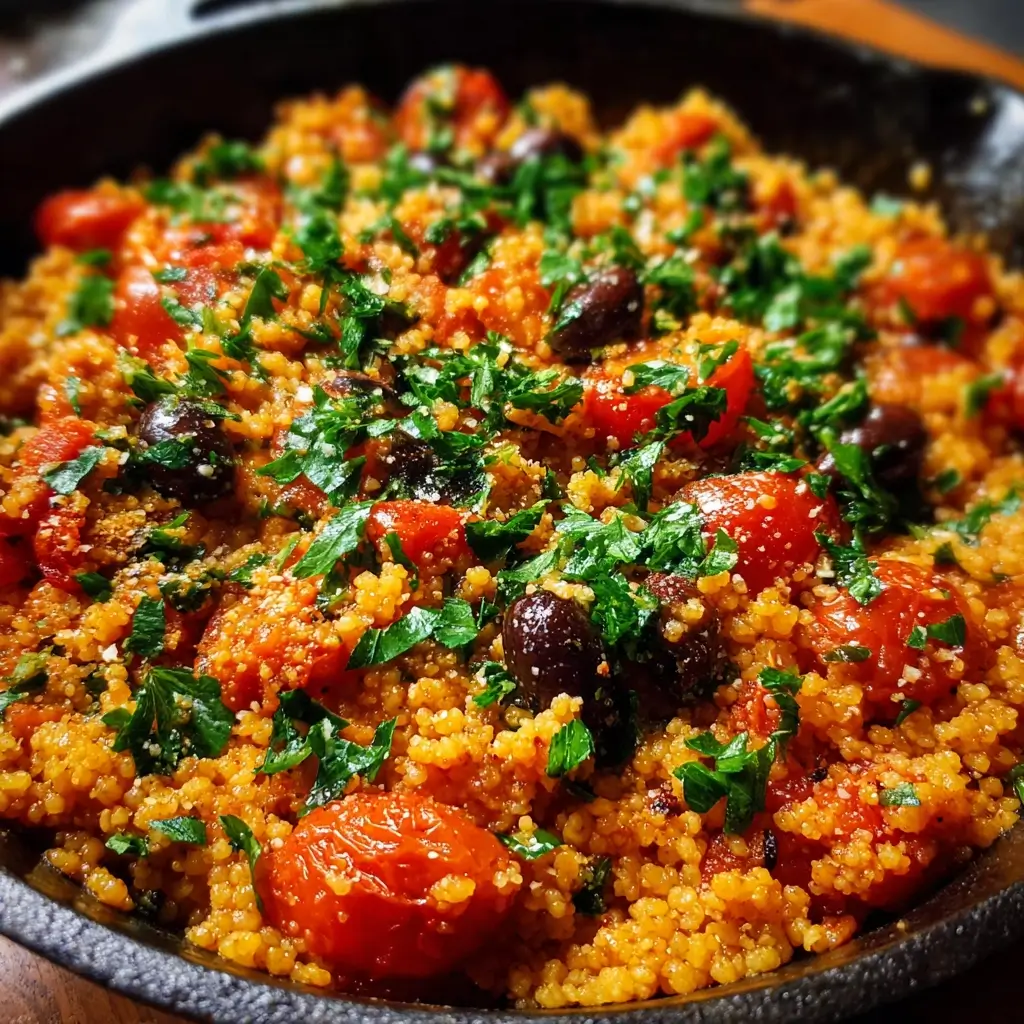 Of all the recipes that have graced my kitchen over the years, there are a select few that become true staples—the ones you turn to on a hectic Tuesday night, the ones you suggest when friends are coming over last minute, and the ones that deliver maximum flavor with minimum fuss. This Tomato Olive Couscous Skillet has firmly cemented its place in that treasured collection. The first time I made it, I was simply looking for a quick, one-pan meal to use up some cherry tomatoes and a jar of olives. I didn’t expect the culinary magic that was about to unfold. As the garlic and onions sizzled, releasing their fragrant aroma, my family started migrating to the kitchen, drawn in by the promise of something delicious. The real moment of triumph, however, was seeing everyone, including my notoriously picky eater, go back for a second helping. The fluffy pearls of couscous, perfectly cooked and infused with the tangy sweetness of burst tomatoes, the briny punch of Kalamata olives, and the subtle warmth of Mediterranean spices, created a symphony of flavors that was both comforting and exciting. It’s more than just a recipe; it’s a solution. It’s a healthy, satisfying meal that comes together in under 30 minutes, and the single skillet means cleanup is an absolute dream. This dish has become our go-to for a reason—it’s effortlessly elegant, incredibly versatile, and undeniably delicious. It’s proof that you don’t need hours in the kitchen to create a meal that feels special and brings everyone to the table with a smile.
