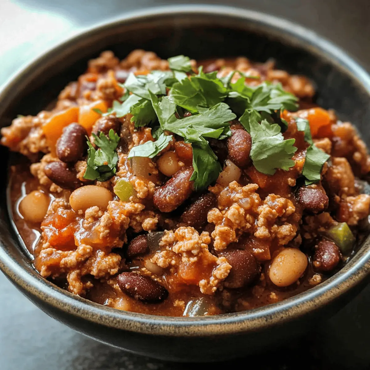 Preparing this Turkey Chili with Beans recipe in advance is a fantastic way to save time on busy weeknights! You can sauté the onions and garlic and brown the turkey up to 24 hours in advance. Simply store these components in an airtight container in the refrigerator. For an even quicker prep, chop the bell pepper and measure out your spices ahead of time. When you’re ready to enjoy your meal, just add the prepped ingredients to the pot along with the beans and tomatoes, bringing everything to a simmer for about 20–25 minutes. This ensures your chili is just as delicious and flavorful, making those hectic evenings a bit more manageable!