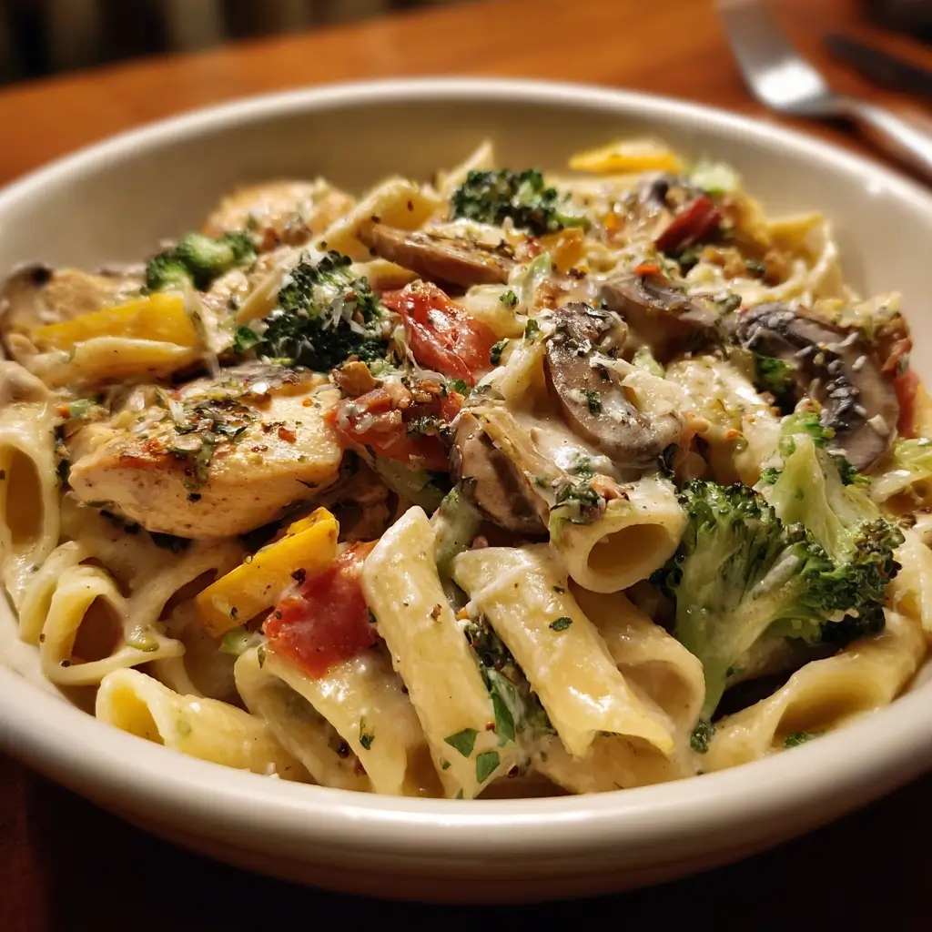 - Serve Immediately: Serve the Veggie-Loaded Chicken Alfredo Pasta hot, garnished with a sprinkle of extra Parmesan cheese and some freshly chopped parsley for a touch of freshness and color.